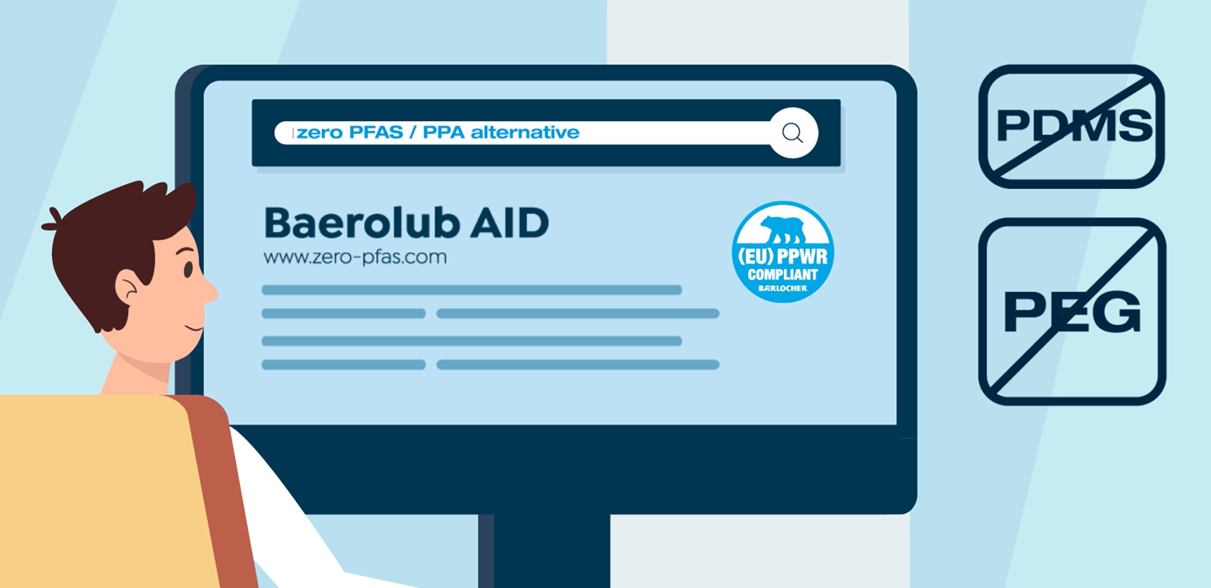 The EU Regulation PPWR (Packaging & Packaging Waste Regulation) prohibits the use of PFAS in packaging above specified limits from mid 2026. With the additive, BAEROLUB AID, we offer you a PFAS-free solution that guarantees maximum performance and full legal compliance – sustainable and future-proof.
